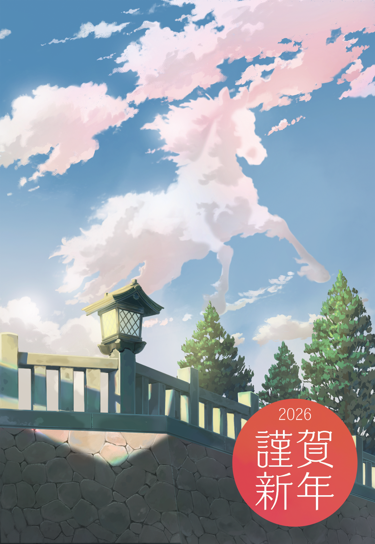 干支としての午は「前進」「飛躍」「活力」みたいなので、文字通りに動きあるシルエットや空気感を意識して描きました。 (年賀状担当者より)